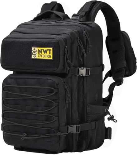 NWT XPEDITION Military Tactical Backpack,Sturdy Work & Molle Laptops Rucksack, Heavy Duty Pack for Hiking Camping Travel Gym,Black