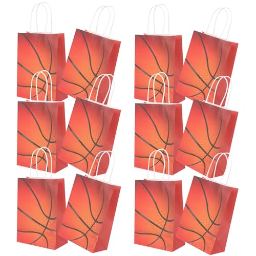 Baluue 12Pcs Basketball Party Favor Bags with Handles, Paper Candy Treat Bags for ’ Birthday Celebration, Sports-Themed Storage Pouches for Party Goodie Fillers