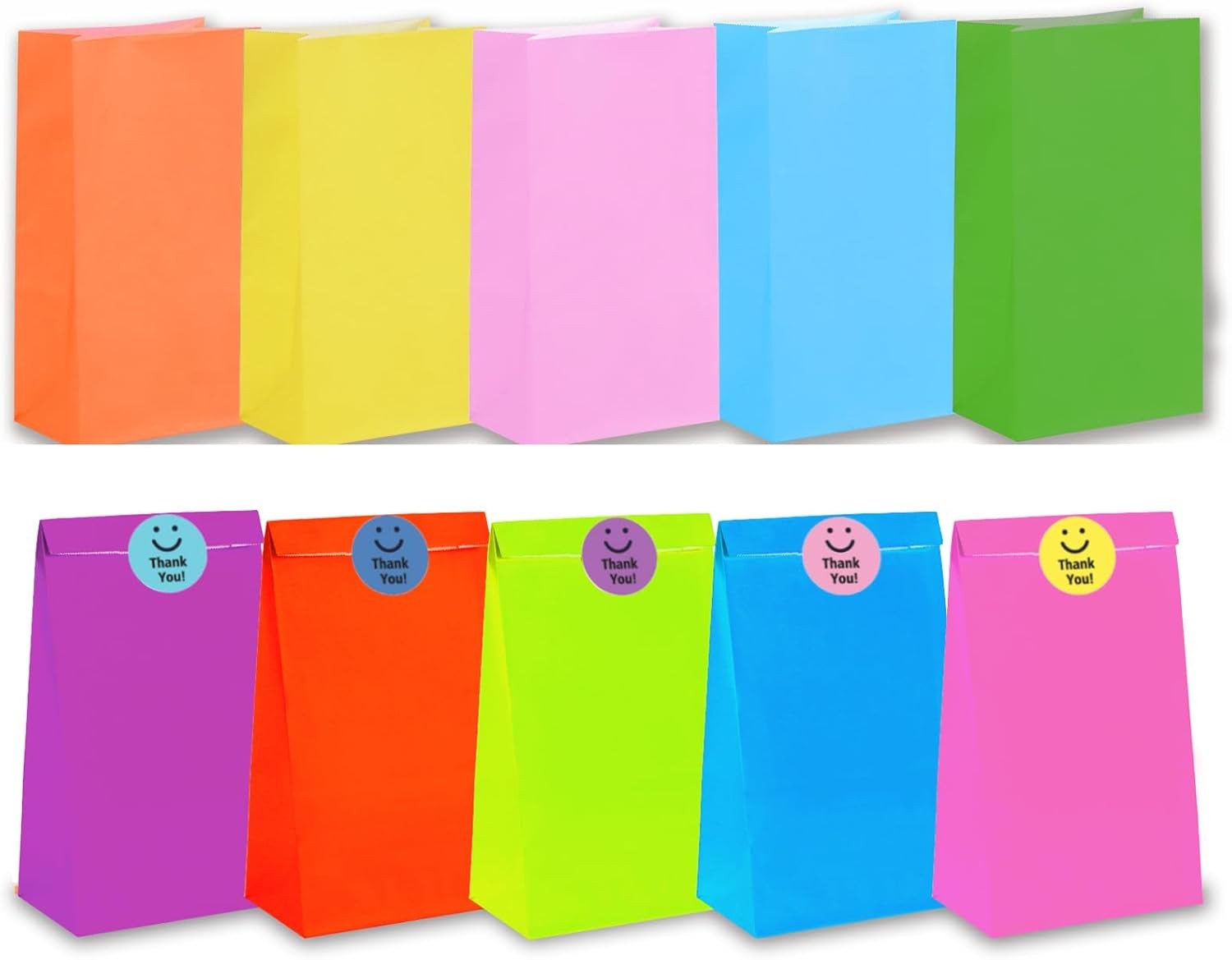 Fun Express Neon Color Paper Goodie Bags | Treat Bags | Paper Lunch Bags | Candy Bags | Favor Bags | Small Bags | 1 Dozen (12 Bags)