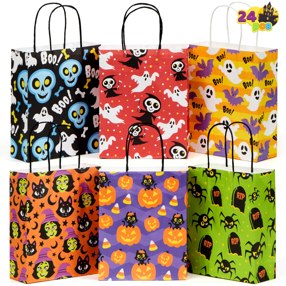 JOYIN 24 Pcs Halloween Goodie Bags with Handles Paper Trick or Treating Gift Bag Bulk in 6 designs for Halloween Treat Party Favor Halloween Colored