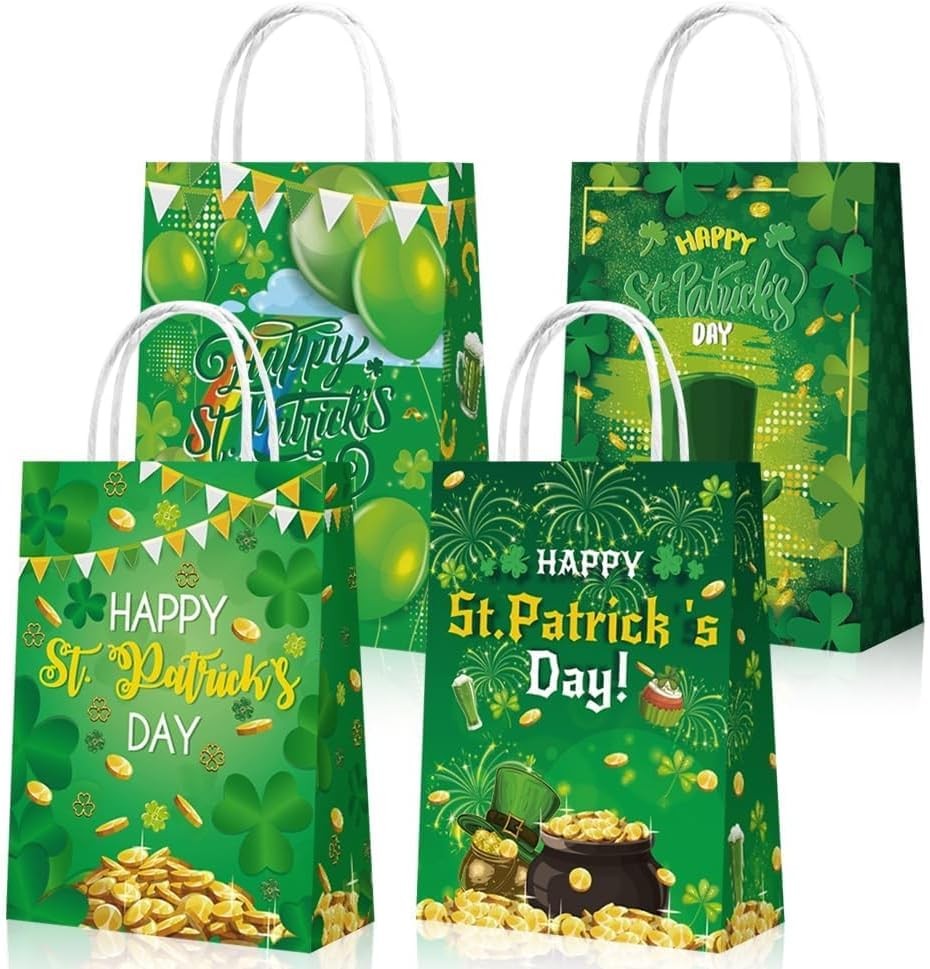 12 Pcs St. Patrick's Day Goodie Bags Lucky Shamrock Green Clover Paper Gift Bag