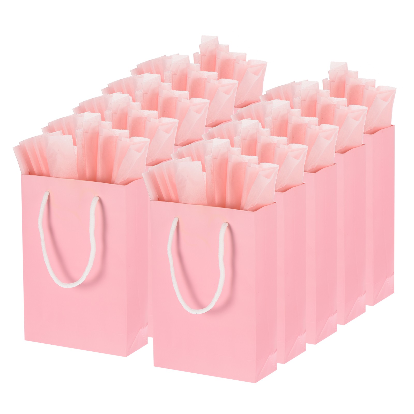 12Set 5.9x2.3x8.6" Favor Gift Bags Goodie Tote with Pink Tissue Paper Pink