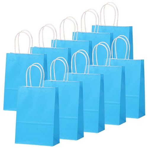 10Pcs Gift Bags Large Baby Blue Paper Party Bags for Kids,Goodie Candy Sweets Bags with Handles,Flat Bottom Kraft Wrapping Paper Party Favour Bag for Present,Christmas Easter Wedding