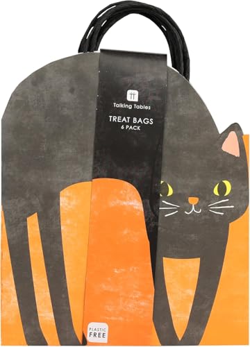 Talking Tables 6 x Cat Shaped Paper Strong Gift Bags with Handles for Halloween Parties and Trick of Tricking Loot Presents Birthday Gifts Party Favors Goodie Treat Bag Black Orange 25 x 16 cm