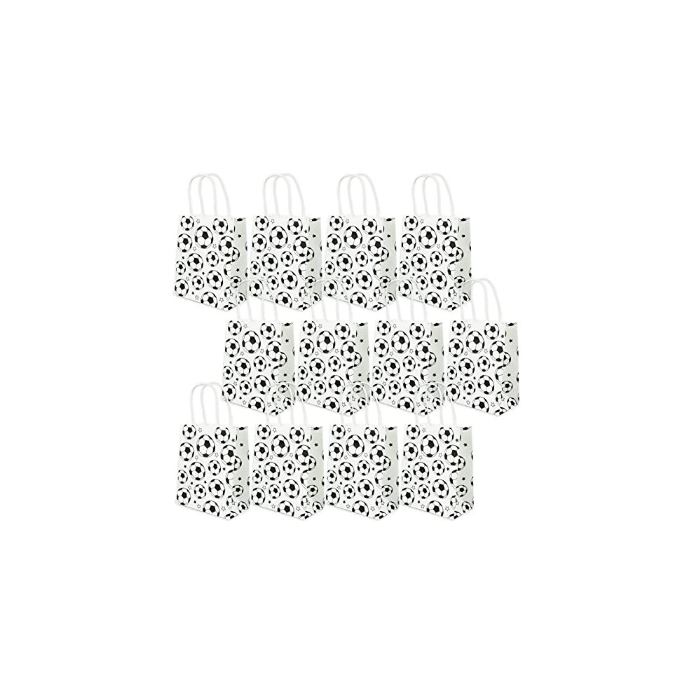 12Pieces Soccer Goodie Bags Paper Soccer Snack Gifts Bags Soccer Candy Bags with Handles Soccer Party Favors Trade Bags for Boys Girls Themed Party