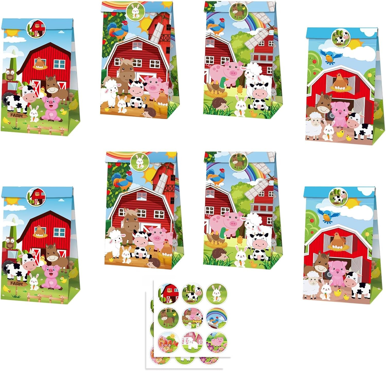 MORAINJAY 12 Pcs Farm Animal Party Bags, Animal Paper Goodie Bags for Kids Birt