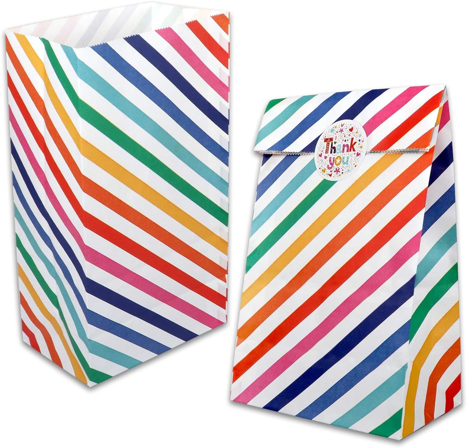 AUERVO 20PCS Rainbow Stripe Kraft Paper Candy Bags, Grocery Goodie Gift Treat B