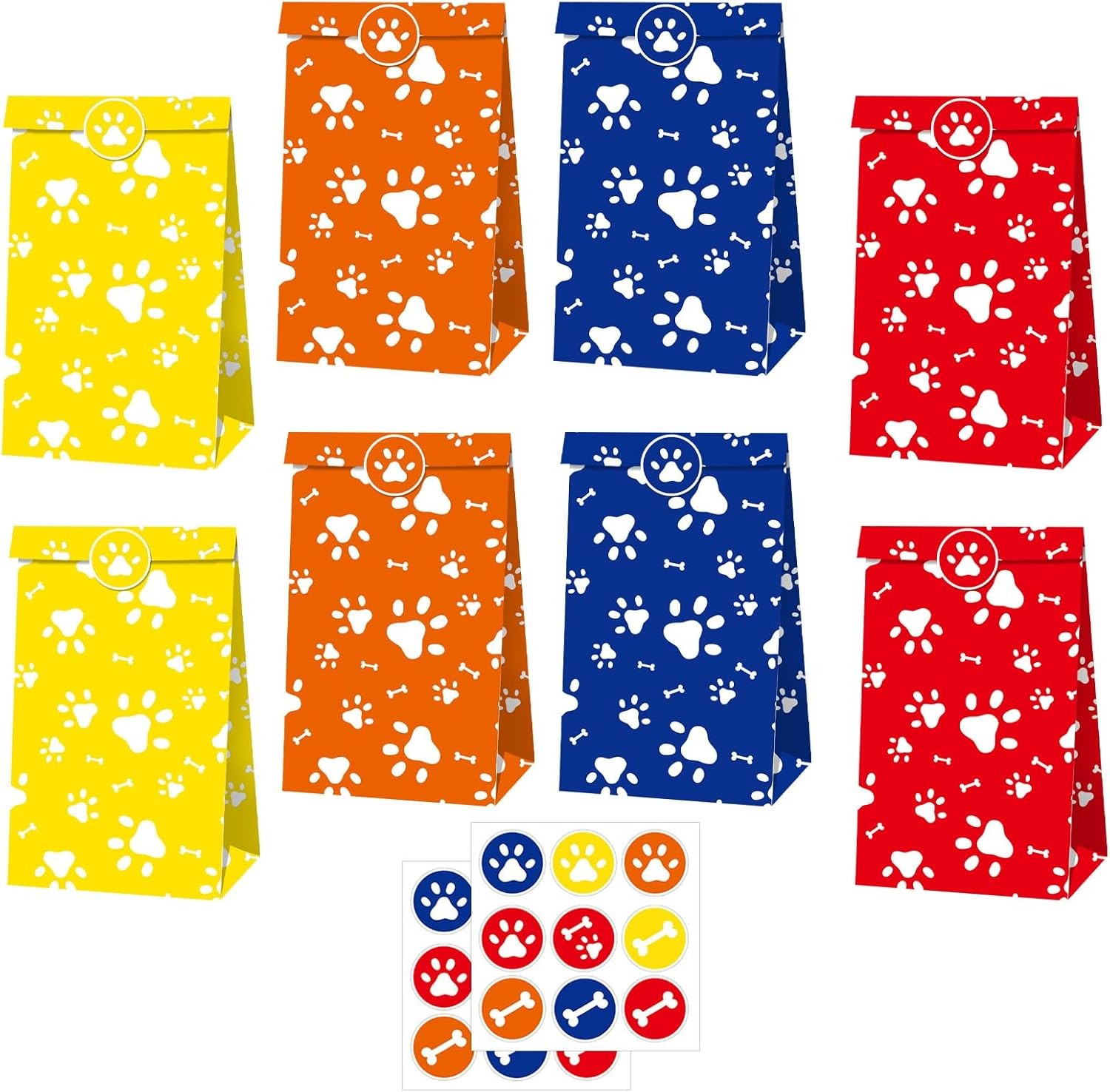 MORAINJAY 12 Pcs Dog Paw Paper Bags, Pet Theme Party Goodie Bags, Dog Birthday