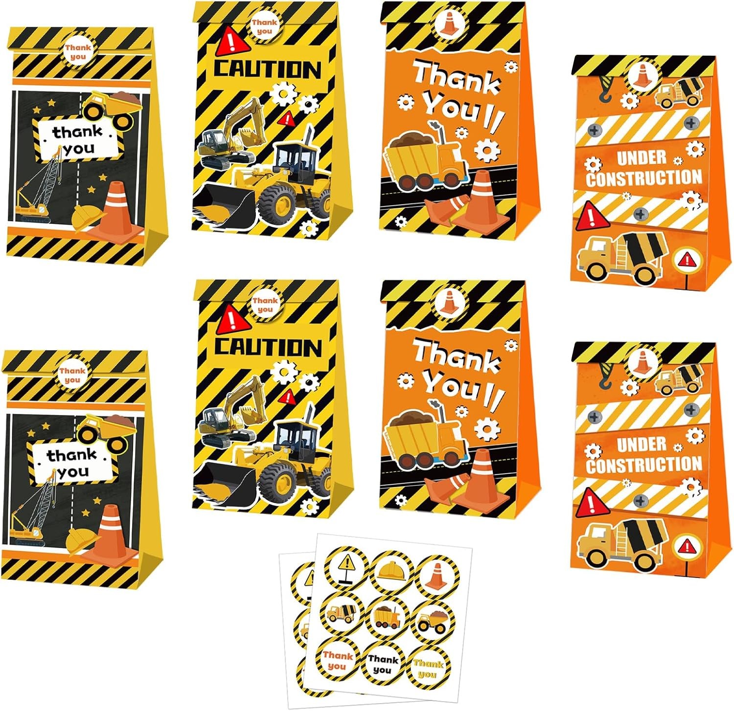 MORAINJAY 12 Pcs Construction Paper Bags, Truck Theme Party Goodie Bags, Kids B