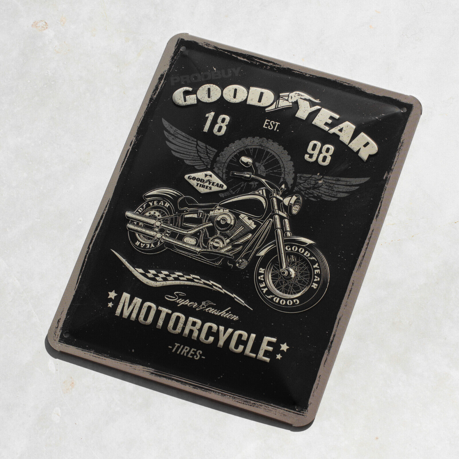 Goodyear Motorcycle Tyres 20cm Metal Tin Sign Plaque Garage Wall Art Merchandise