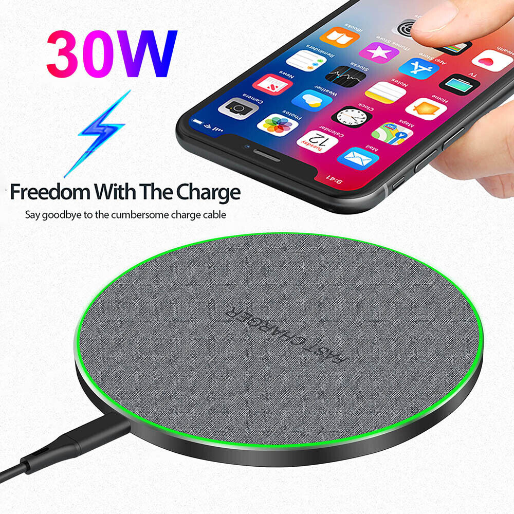 30W Fast Wireless Charger Charging Pad Mat For iPhone 15 14 Google Pixel 7 8 Pro