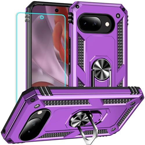 for Pixel 9A Case with Screen Protector: Military Grade Protective Cases with Ring Holder Kickstand for - Google Pixel 9A (Purple)