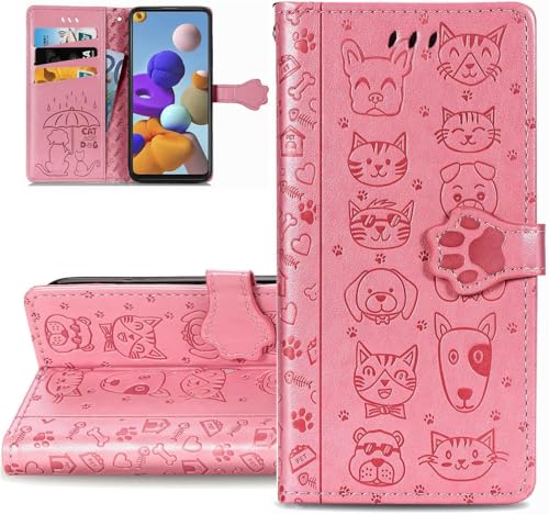 LEMAXELERS Phone Case for Google Pixel 9A Flip Wallet Cute Cat Dog Embossed PU Leather Magnetic Closure Kickstand Card Slot Shockproof Bumper Protection Case for Google Pixel 9A,SD Cat Pink