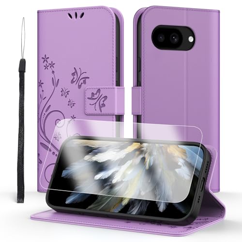 ScandiCasis Leather Case for Google Pixel 9A, Elegant Flip Phone Case with [3*Card Slots] [Wallet] [[Kickstand] [Wrist Strap], Magnetic Closure Shockproof Cover, Purple