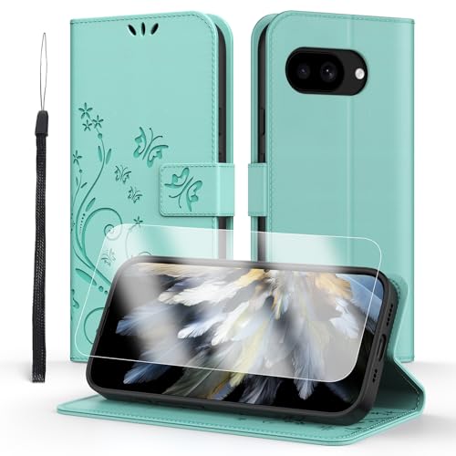 ScandiCasis Leather Case for Google Pixel 9A, Elegant Flip Phone Case with [3*Card Slots] [Wallet] [[Kickstand] [Wrist Strap], Magnetic Closure Shockproof Cover, Mint Green