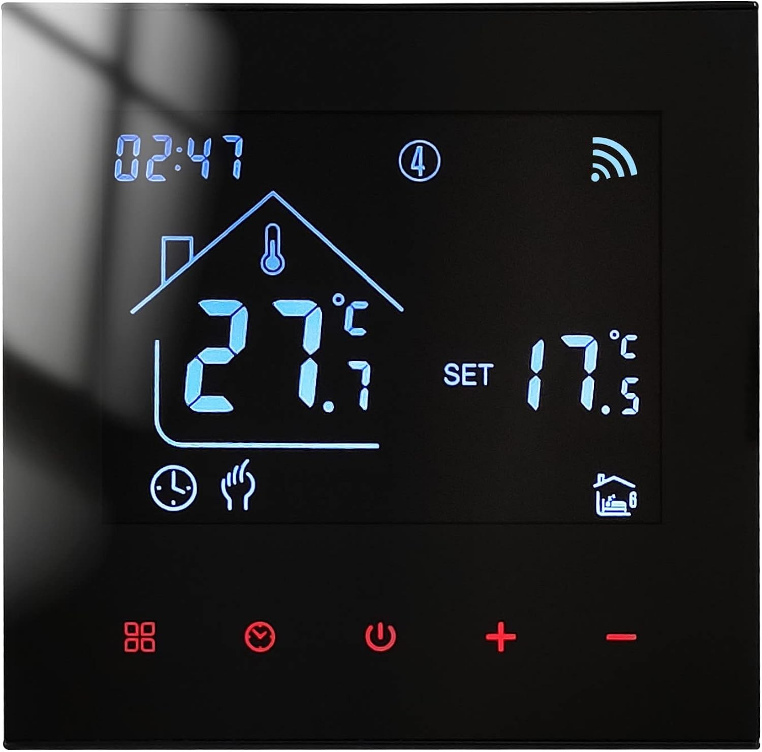 (Black) WIFI Thermostat for Water Floor Heating Touch Screen Temperature Controller Work with Alexa Google Home AC95~240V