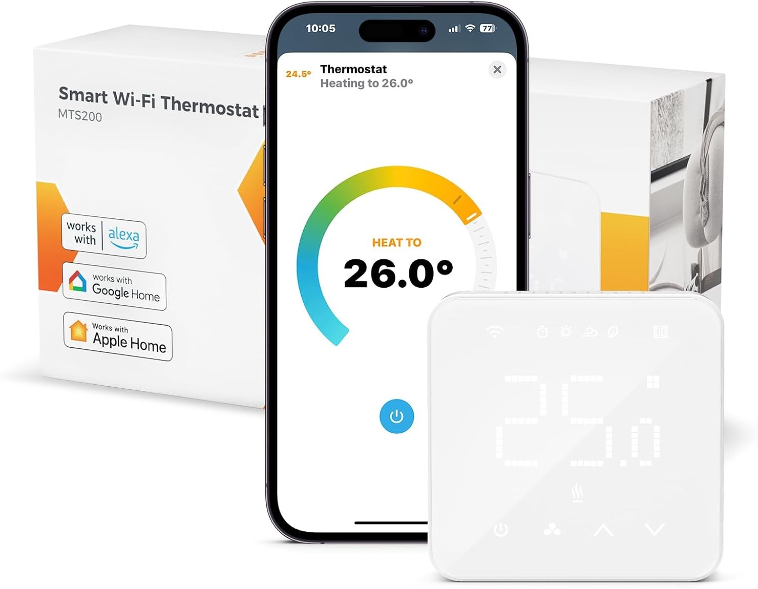 Meross Smart Thermostat for Electric Underfloor Heating, WiFi Thermostat Works with Matter, HomeKit, Alexa, Google and Home Assistant, Smart Heating with Timer, App Control, Energy Saving, Hubless