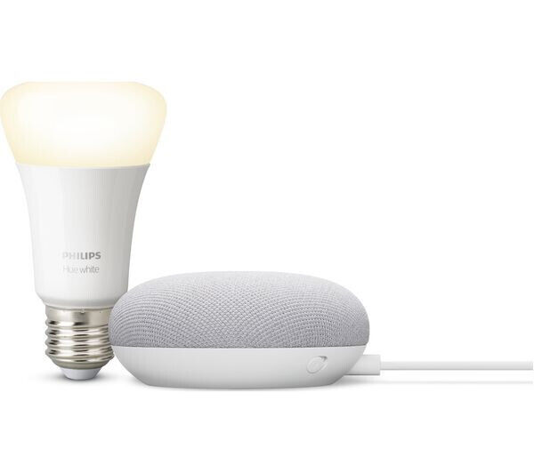 GOOGLE Nest Mini & Philips Hue White Bluetooth LED E27 Bulb Bundle - Chalk