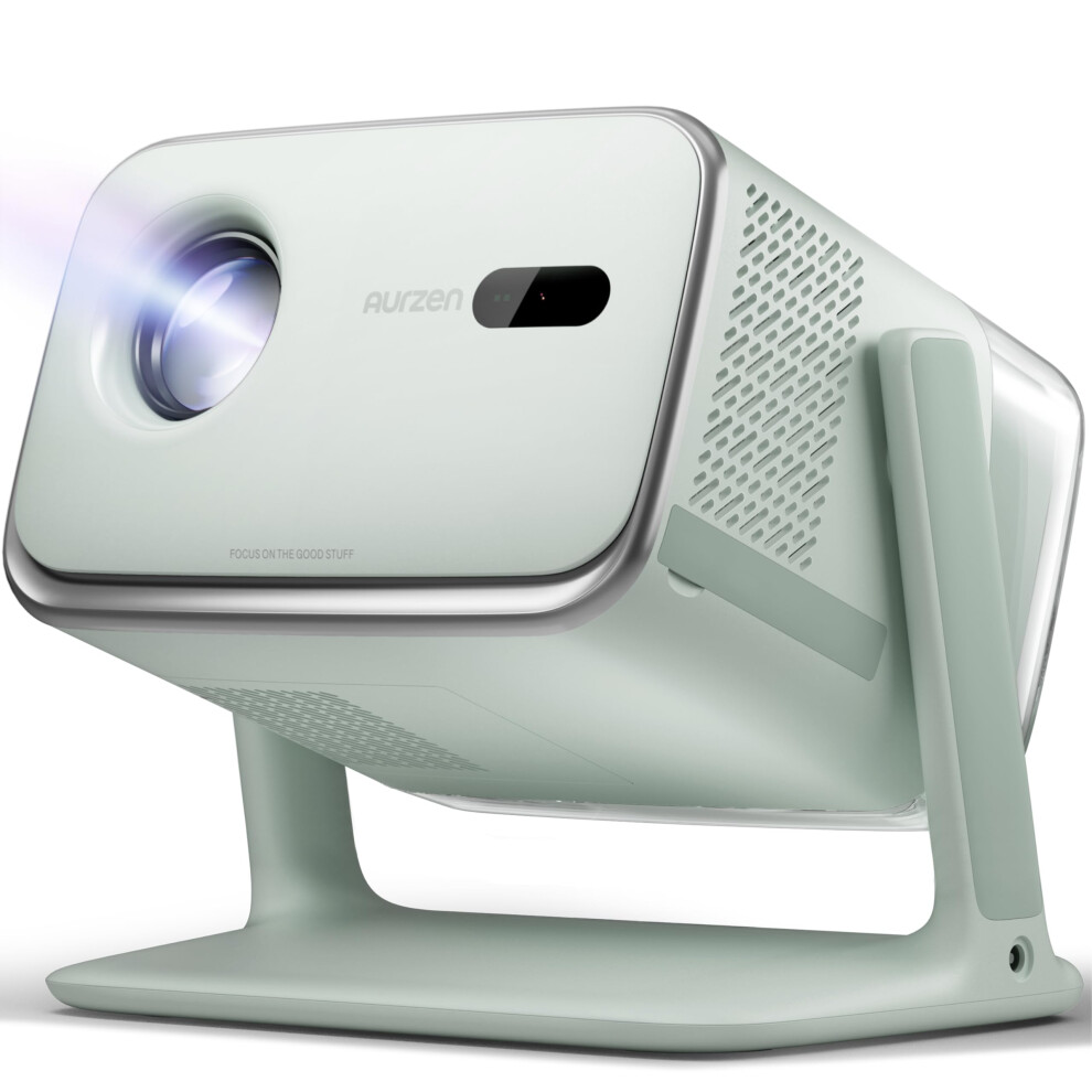 Aurzen BOOM mini Google TV Smart Projector with WiFi and Bluetooth, 4K Supported Outdoor & Home Movie Projector with 20W Speakers DoIby Audio, Real-Time Focus & Keystone, 500 ANSI Lumens, Green