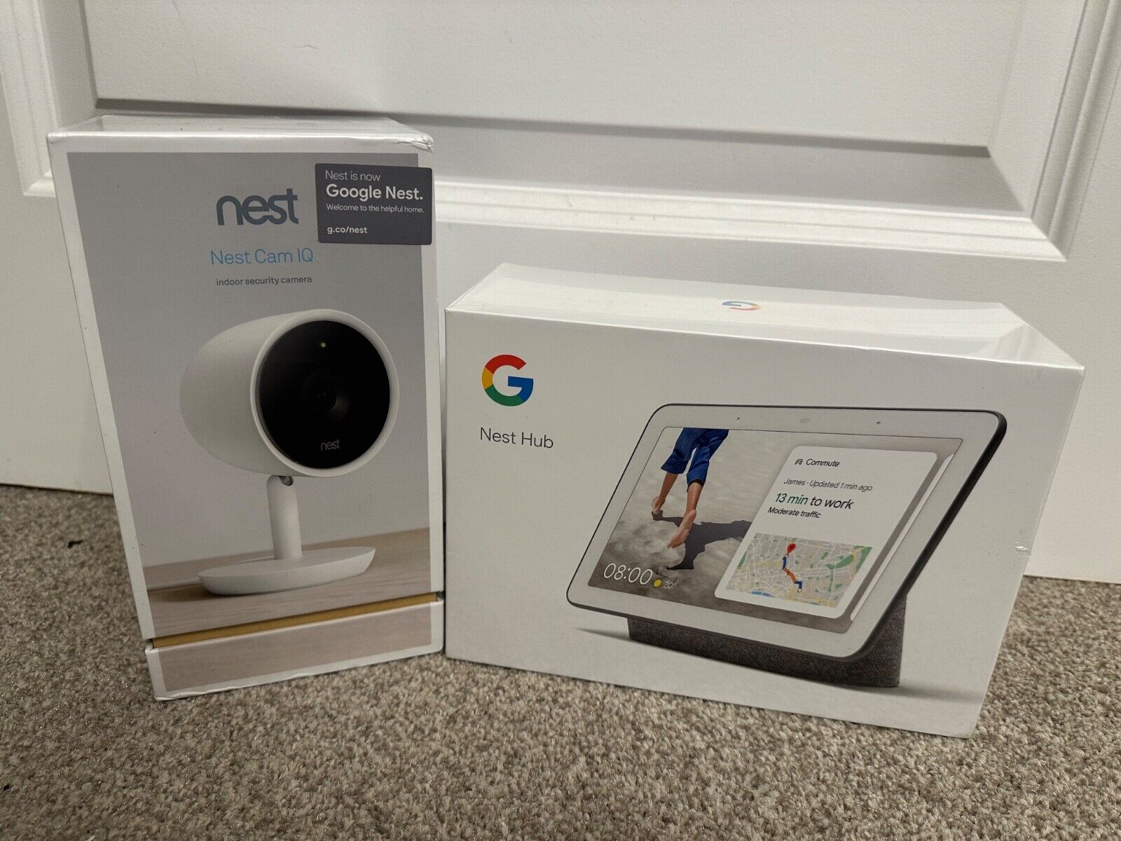 GOOGLE NEST CAM IQ INDOOR SMART SECURITY CAMERA NC3100GB + HOME HUB DISPLAY