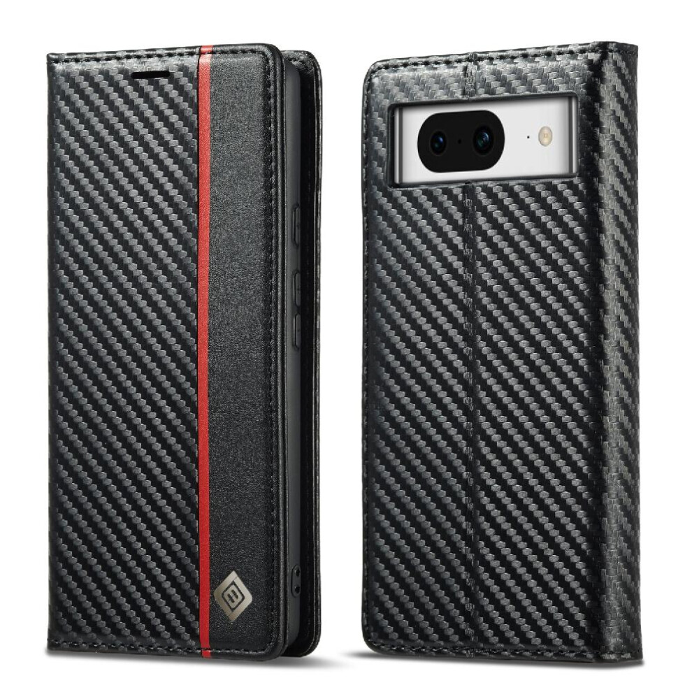 (Black) Case For Google Pixe 8 With Card Holder Kickstand Leather Folio Flip Case Card Insertion Magnetic Carbon Fiber Full Protection