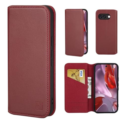 32nd Classic Series 2.0 - Real Leather Book Wallet Flip Case Cover For Google Pixel 9a, With RFID Blocking Card Slot, Magnetic Closure and Built In Stand - Burgundy