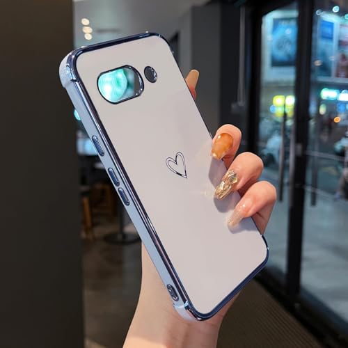 Knoowcase for Google Pixel 9A Case for Google Pixel 9A Phone Case for Girls Women Shockproof Flexible Silicone Bumper Lens Protection Luxury Plated Gold Heart Slim Anti Scratch Phone Cover,Blue