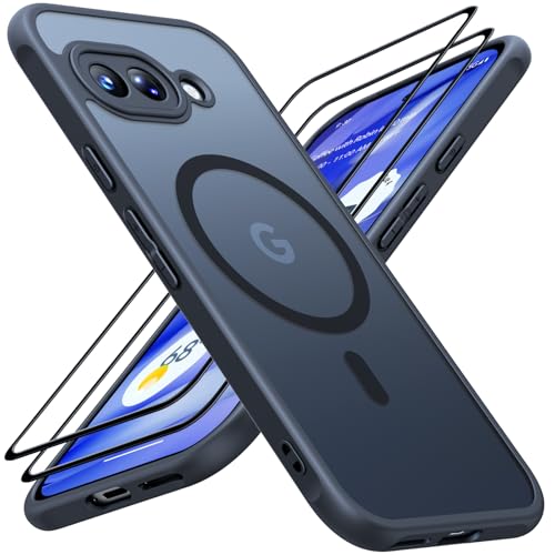 JAME for Google Pixel 9A Case with MagSafe, Slim Fit Pixel 9A Case and [2 Pack] Screen Protectors Translucent Matte Shockproof Protective Case for Google 9a, Black