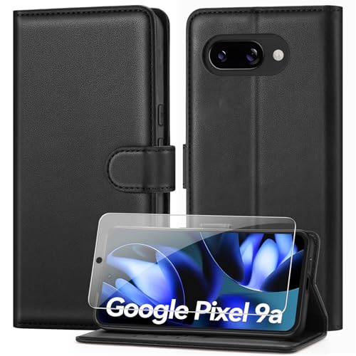 ivencase Compatible with Google Pixel 9a Case with 1 Screen Protector, PU Leather Flip Wallet Phone Case with Card Slots Stand [RFID Blocking] Magnetic Closure for Google Pixel 9a - Black