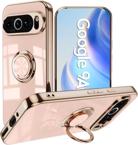 Knoowcasefor for Google Pixel 9A Case 360°Rotatable Stand Ring Shockproof TPU Cover Protective Slim Phone Cover for Google Pixel 9A Phone Case, Pink