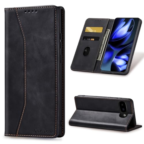 KIOTROUO Case for Google Pixel 9A Leather Wallet Case with Card Holder, Kickstand, Magnetic Closure, PU Flip Shockproof Protective Phone Case Cover Compatible with Google Pixel 9A 5G, Black