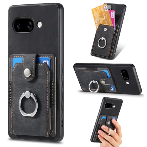 Knoowcase for Google Pixel 9A Phone Case Wallet Shockproof Bumper Case with Ring Holder Card Slots PU Leather Cover Anit-Fall Anti-Drop Kickstand Back Cover for Google Pixel 9A Case,Black