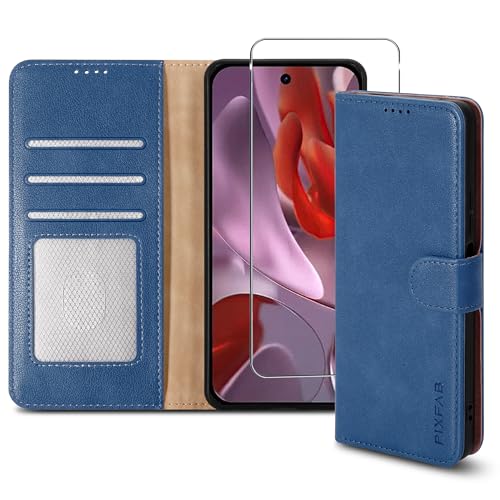 PIXFAB Case for Google Pixel 9A, Leather Wallet Phone Case, Magnetic Book Flip Folio Cover [RFID Protection & Card Slots] and [Kickstand] Phone Case with Screen Protector for Pixel 9A - Blue