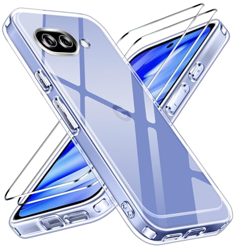 PIXFAB Case for Google Pixel 9A Clear Phone Case with 2 x Screen Protector Tempered Glass, Shockproof [Slim] Scratch Resistant Gel Rubber Silicone [Protective Case] Clear Phone Cover for Pixel 9A