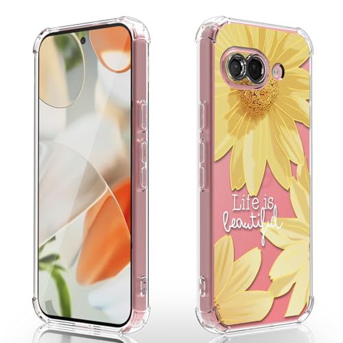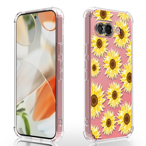 Osophter for Google Pixel 9A Case: Clear Transparent Reinforced Corners TPU Shock-Absorption Flexible Cell Phone Cover for Google Pixel 9A(Sun Flower)