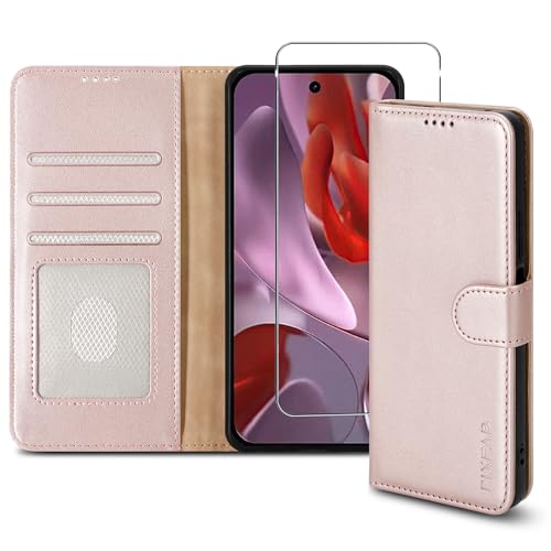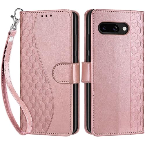 PIXFAB Case for Google Pixel 9A, Leather Wallet Phone Case, Magnetic Book Flip Folio Cover [RFID Protection & Card Slots] and [Kickstand] Phone Case with Screen Protector for Pixel 9A - Rose Gold