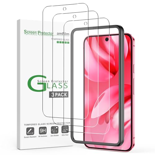 amFilm 3 Pack for Google Pixel 9A Screen Protector, Tempered Glass, Ultrasonic Fingerprint Compatible, with Easy Installation Frame, Anti Scratch, Bubbles-Free, Case Friendly