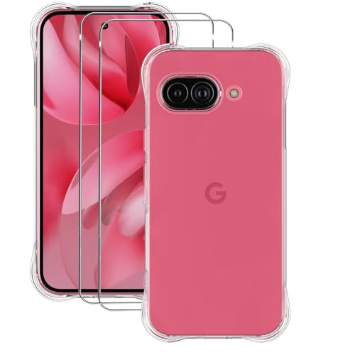 ivoler Cover for Google Pixel 9A, 1 Phone Case with 2 Packs Tempered Glass Screen Protector, [Military Protection] Shockproof Protective Thin - Clear