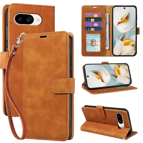 GOTOURED for Pixel 9a Case Wallet with RFID Blocking, 4 Card Slots & Detachable Wrist Strap, Kickstand, Slim Business PU Leather Protective Cover for Google Pixel 9A 2025 (Brown)