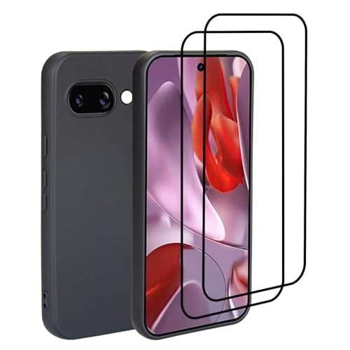 32nd Silicone Case Cover for Google Pixel 9a With 2 X Screen Protectors, Slim and Durable Protective Case - Black