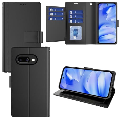 Pollachi Phone Case for Google Pixel 9a 5G(9 Cards),Google Pixel 9a 5G Accessories Flip Magnetic Case, PU Leather Foldable Wallet Cover with Reid Blocking,Holder and Stand[Black]