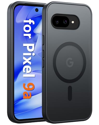FNTCASE for Google Pixel 9a Case: Magnetic Translucent Matte Shockproof Slim Cell Phone Cover - Military Grade Drop Proof Hard Back Anti-Fingerprint Protective Case (6.3 Inch/Black)
