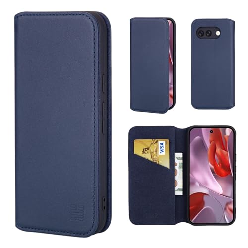 32nd Classic Series 2.0 - Real Leather Book Wallet Flip Case Cover For Google Pixel 9a, With RFID Blocking Card Slot, Magnetic Closure and Built In Stand - Navy Blue