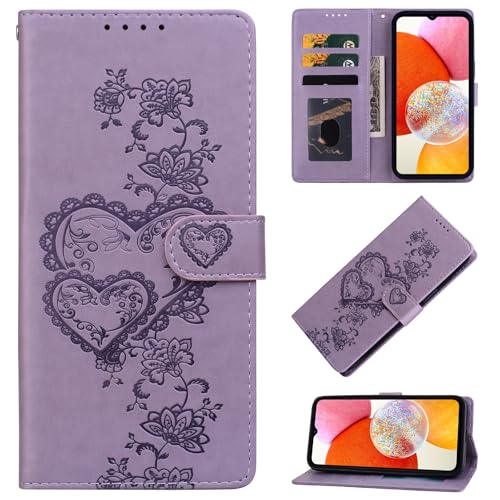 BOLELAW Case for Google Pixel 9A [Magnetic Closure][Card Slot][Stand Function] Embossed Heart Peach Leather Wallet Flip Case for Pixel 9A, Purple