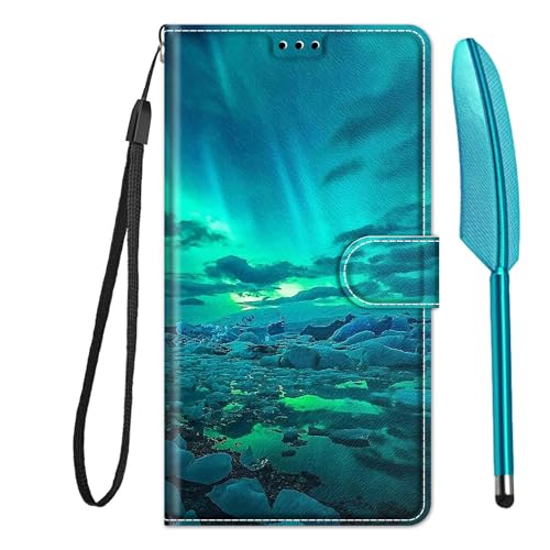 Knoowcase for Google Pixel 9A Case Shockproof Wallet Flip PU Leather Silicone Protective Bumper Case with Card Holder Magnet Kickstand for Google 9A Case & 1 Touch Pen, Green Light
