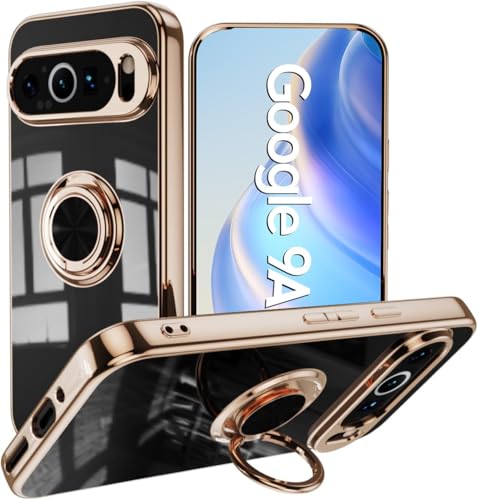 Knoowcasefor for Google Pixel 9A Case 360°Rotatable Stand Ring Shockproof TPU Cover Protective Slim Phone Cover for Google Pixel 9A Phone Case, Black