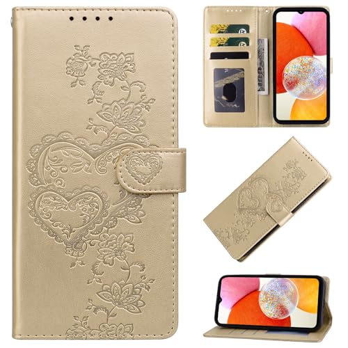 BOLELAW Case for Google Pixel 9A [Magnetic Closure][Card Slot][Stand Function] Embossed Heart Peach Leather Wallet Flip Case for Pixel 9A, Gold