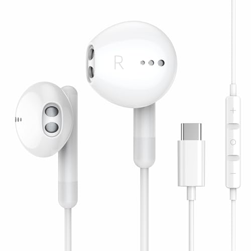 USB C Headphones Wired Earphones iphone 16 17, Type C Headphones In Ear Earbuds Wired with Mic &Volume Control for iPhone 15 Plus Samsung Galaxy S23 S22 S21 FE iPad Pro Huawei Google Pixel