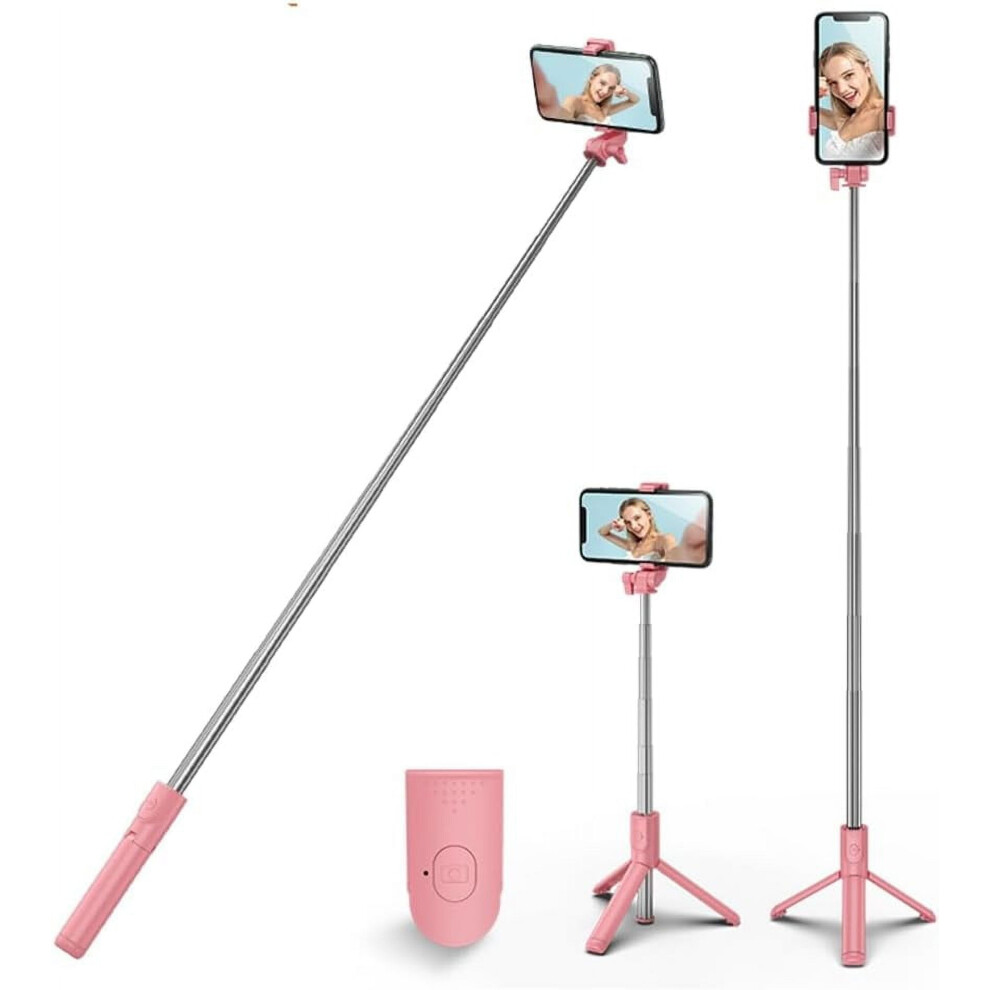 Selfie Stick Tripod with Detachable Bluetooth Remote, Compatible with iPhone 15 Pro Max/15 Plus/14/13, Samsung, LG, Google Phones (Pink)