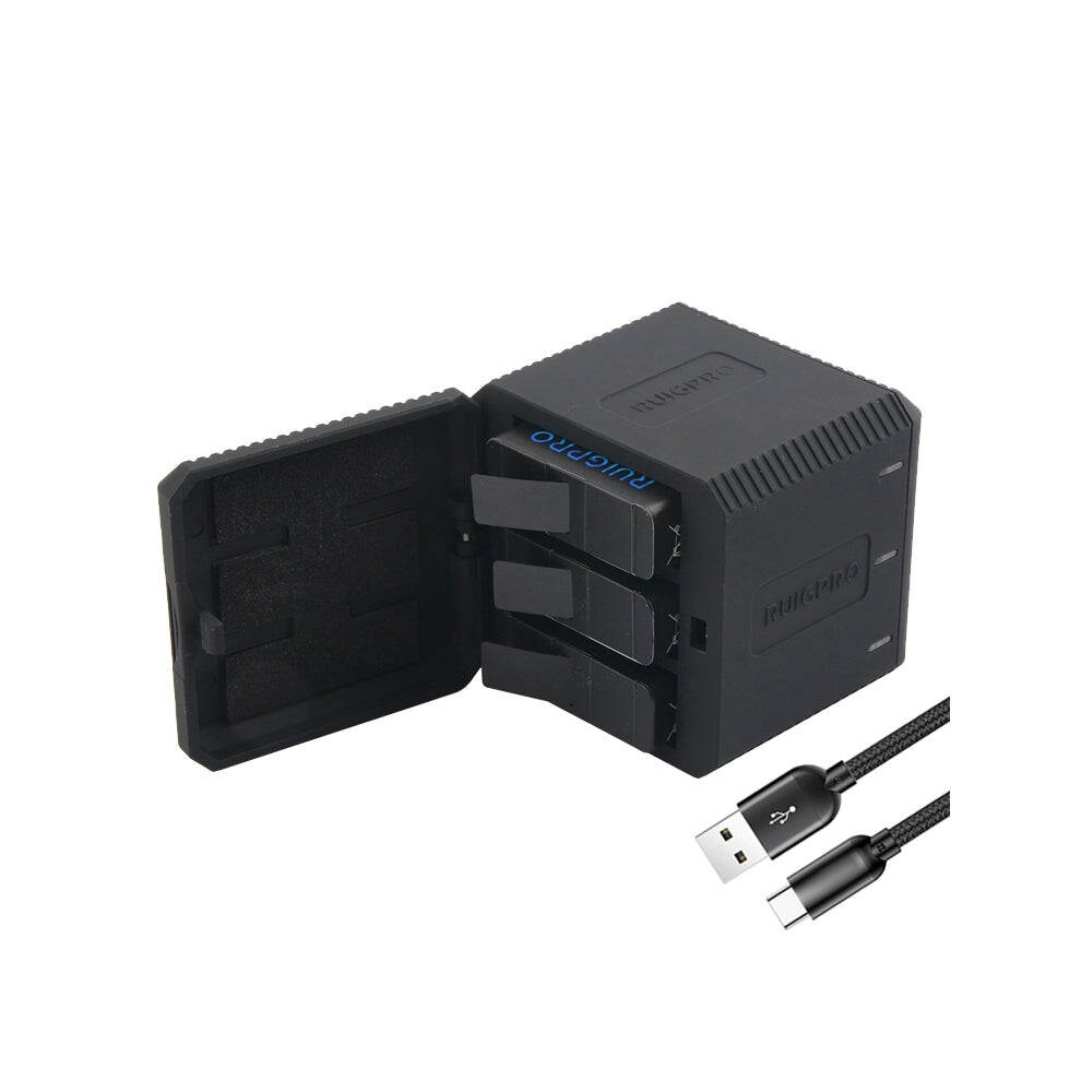 RUIGPRO USB Triple Batteries Housing Charger Box with USB Cable & LED Indicator Light for GoPro HERO6 /5(Black)